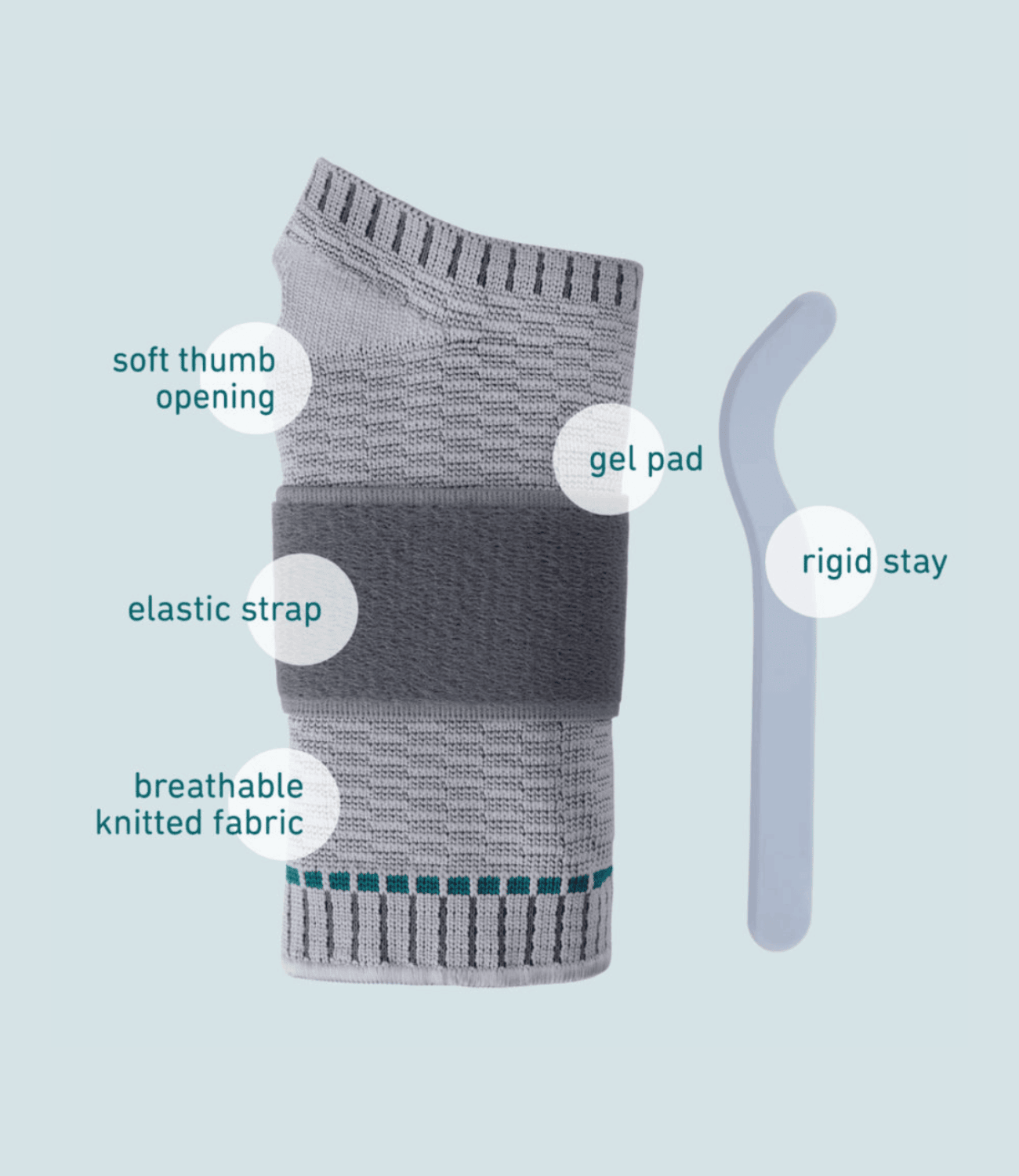 A simple wrist support for compression with pad, stay and strap - designed and made in Germany.